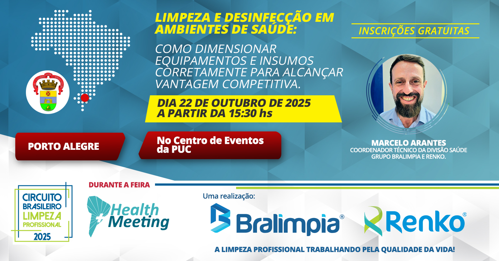 Coordenador Técnico da Divisão Saúde da Bralimpia Equipamentos e Renko Químicos; Graduado em Comércio Exterior / Pós graduado em Gestão Comercial; Pós Graduando em Hotelaria Hospitalar 25 anos de experiência no mercado da Limpeza Profissional no Brasil e América Latina